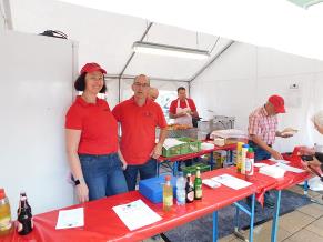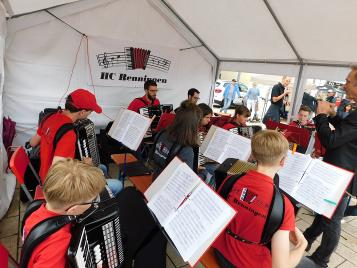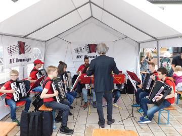 Trotz Regen und Gewitter fand am Freitag, den 12.07.2019 die lange Einkaufsnacht statt. Es wurden fleißig rote Würste und Bratwürste gegrillt und Pommes gemacht, die an die zahlreichen Besucher verkauft wurden. Gegen 18:30 Uhr spielte das Jugendorchester einige Stücke zur Unterhaltung der Besucher. Diese saßen teilweise mit Schirmen auf den Bänken, um der Musik zuzuhören. Doch schon nach einer halben Stunde fing es so stark zu regnen an, dass das Jugendorchester seinen Auftritt beenden musste und die Instrumente in Sicherheit gebracht werden mussten.
